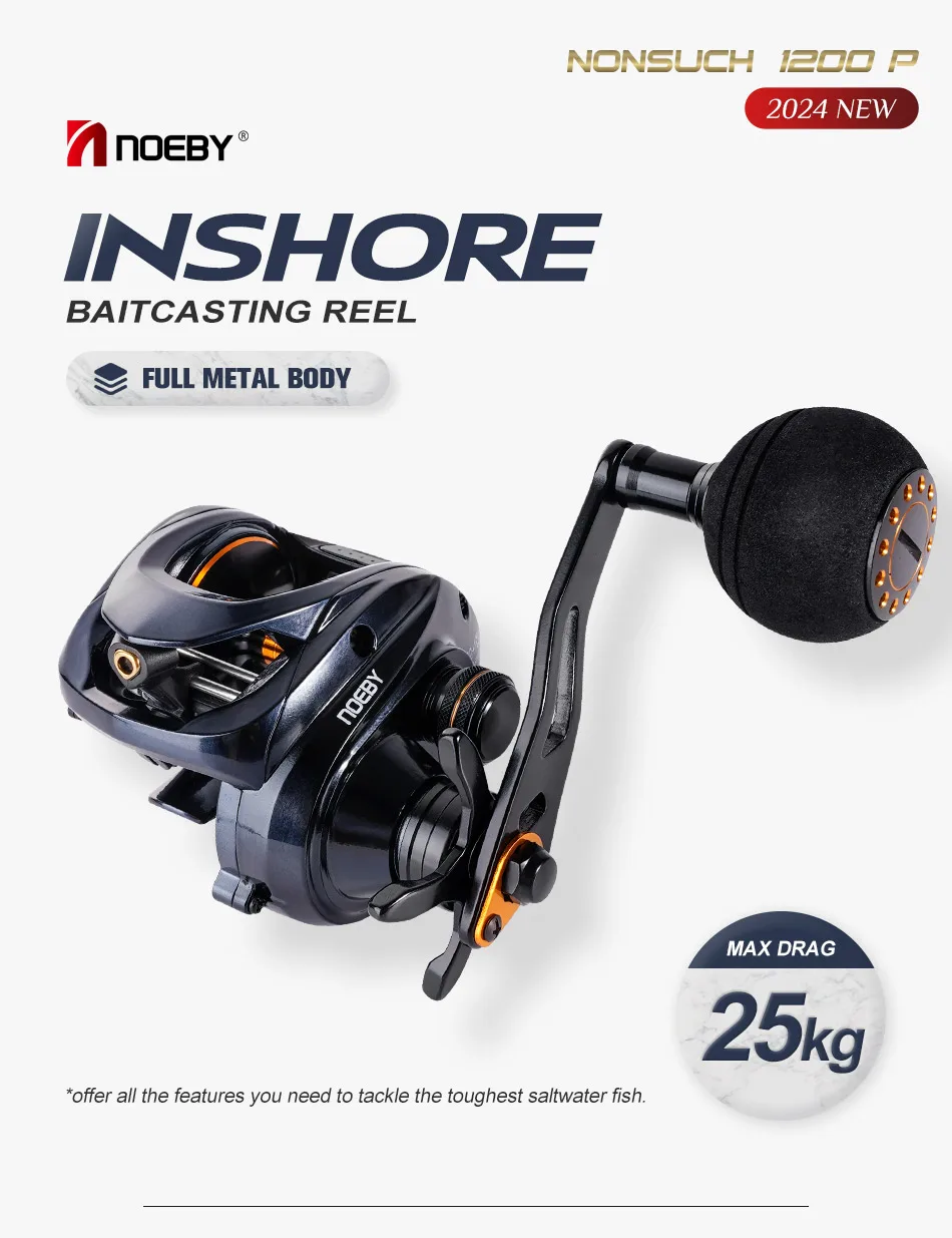 Noeby 1200P Baitcasting Fishing Reel Inshore Full Metal Body 6.3:1 Rear Ratio Max Drag 25kg Saltwater Big Game Fishing Reels