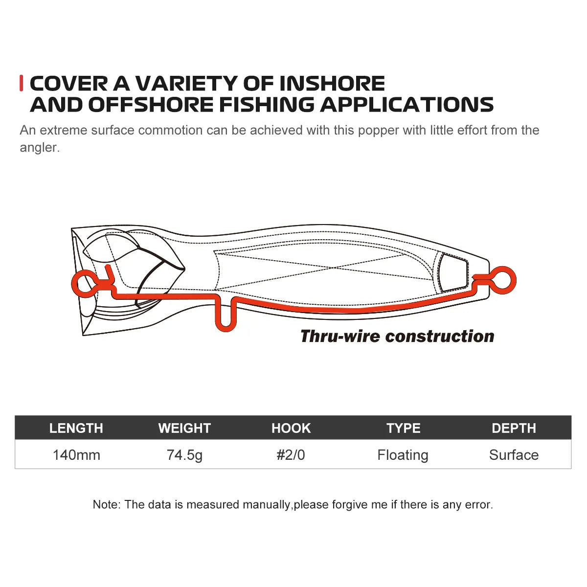 Noeby Popper Fishing Lure 140mm 75g Topwater Big Spalsh Wobbler Reinforced Artificial Hard Bait Sea GT Tuna Fishing Lures