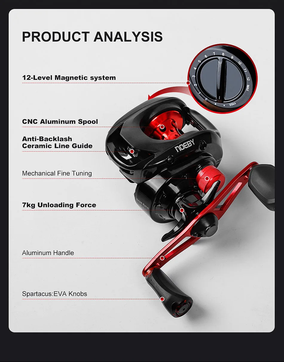 NOEBY Baitcasting Fishing Reel 7kg Darg 7.1:1 High Speed Ratio Ultralight Magnetic System Casting finesse Fishing Reels