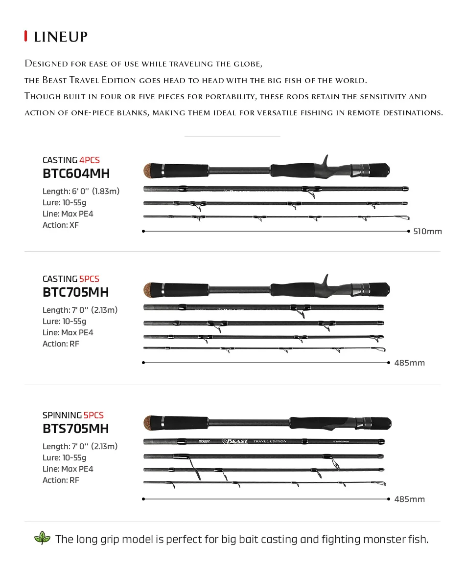 NOEBY Beast Predator Travel Edition Fishing Rod 1.83m 2.13m Spinning Casting Fuji Toray Catfish Predator Portable Fishing Rods