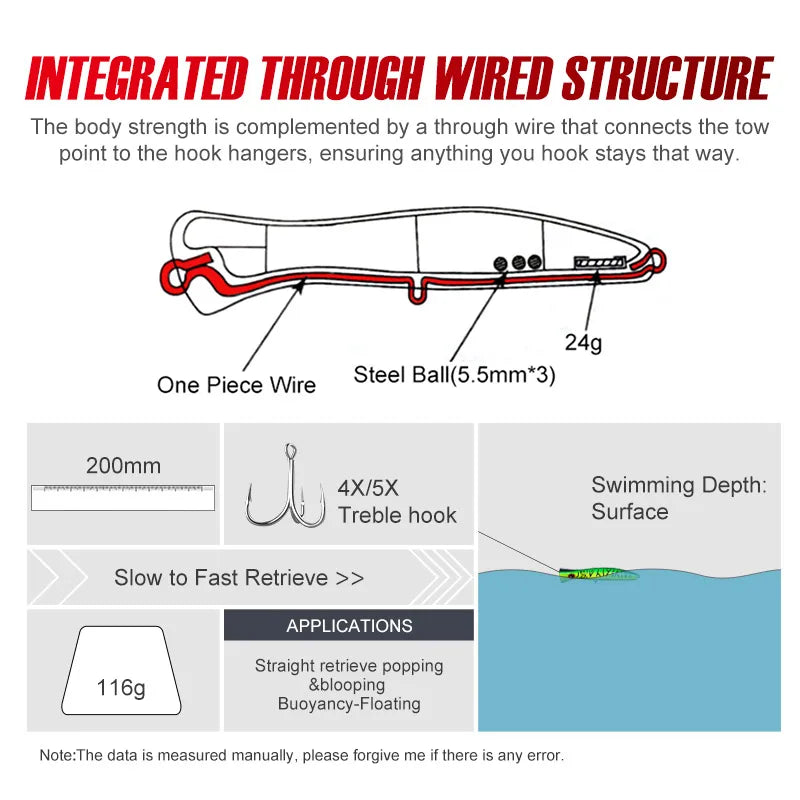 NOEBY Big Game Popper Fishing Lure – 200mm 116g Topwater Predator Specialist