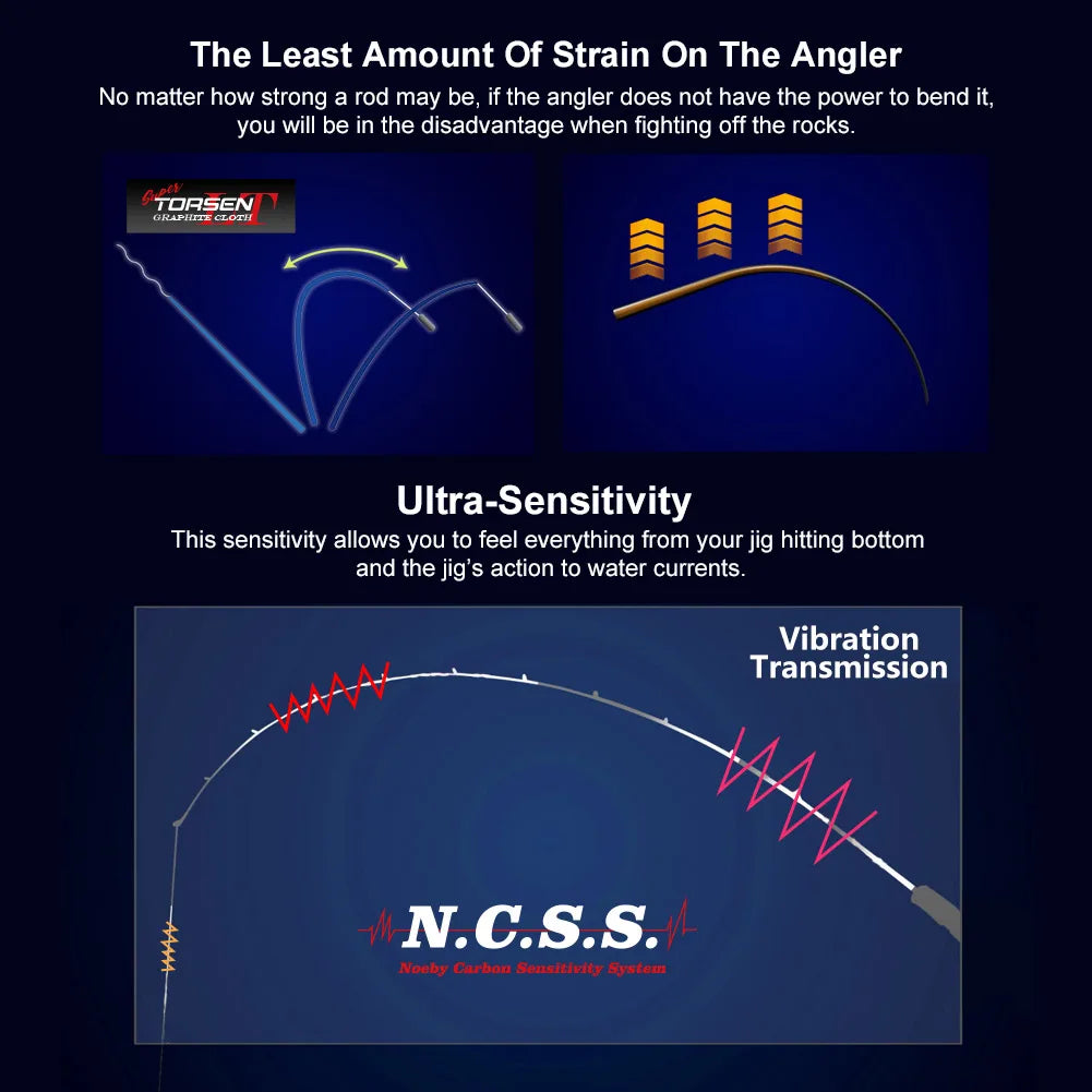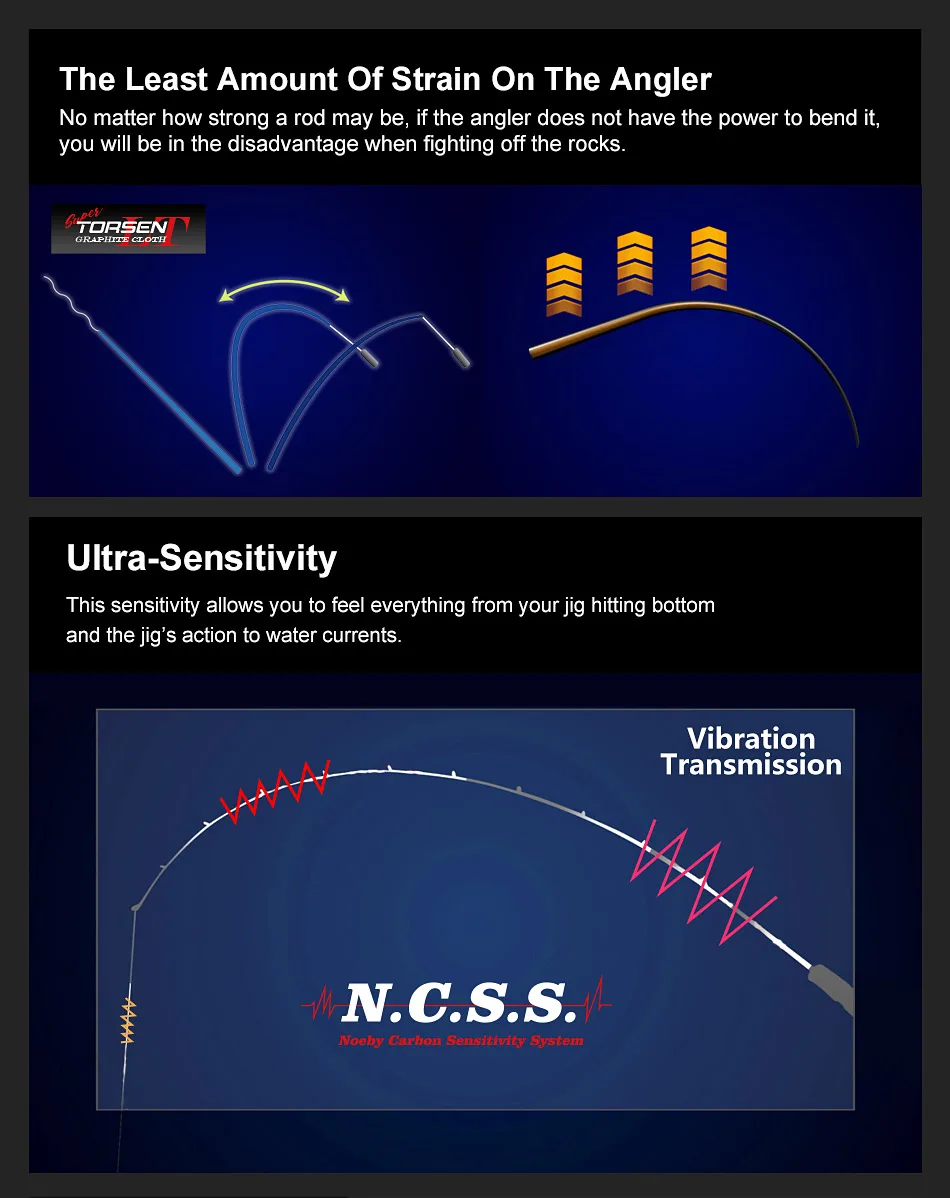 No matter how strong a rod maybe, if the angler does not have the power to bend it, you will be in the disadvantage when fighting off the rocks.