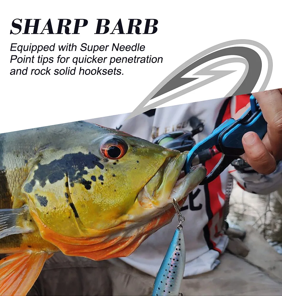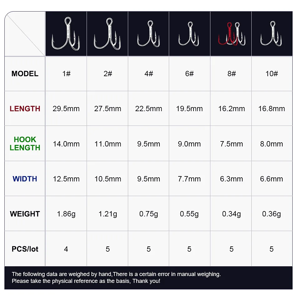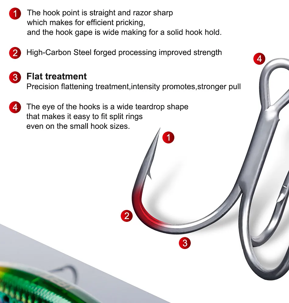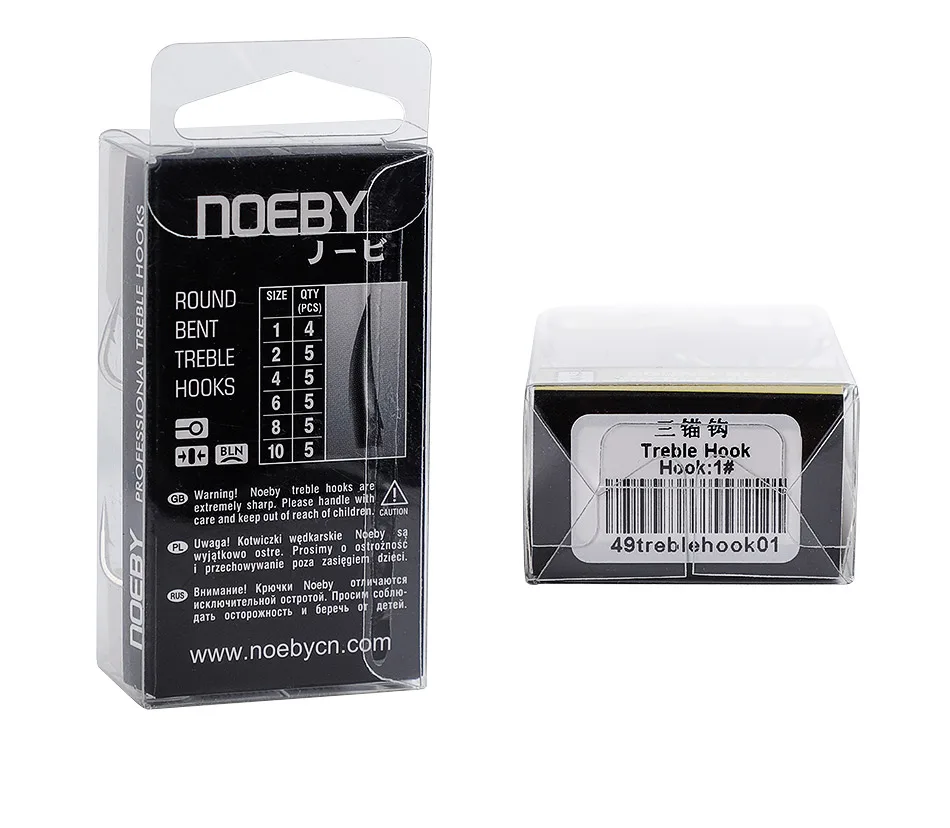 Noeby 4Pcs 3X Strong Fishing Hooks 1 2 4 6 8 10# High Carbon Steel ST-46 Round Bent Treble Hook for Bass Pike Fishing Tackle