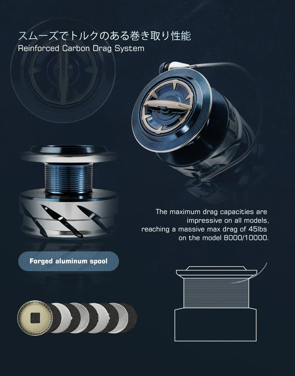 Noeby INFINITE Spinning Fishing Reel 2500 3000 4000 5000 6000 8000 10000 Series Saltwater 45lb Drag Aluminum Spinning Fishing Reels
