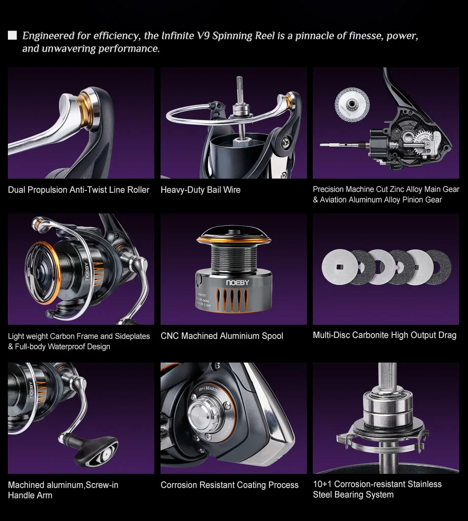 Engineered for efficiency, the Infinite V9 Spinning Reel is a pinnacle of finesse, power, and unwavering performance.