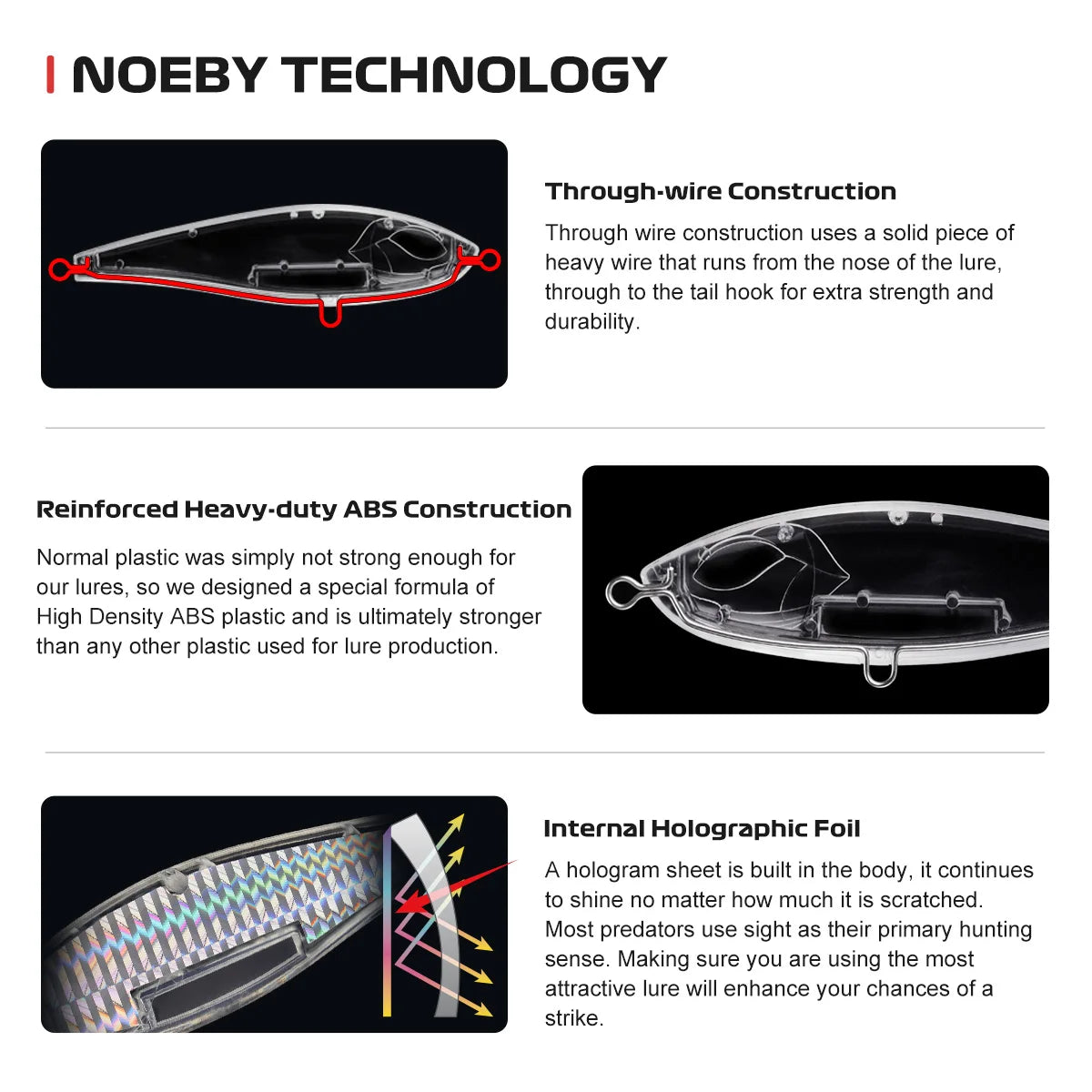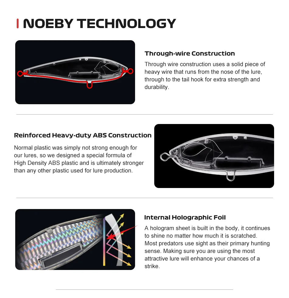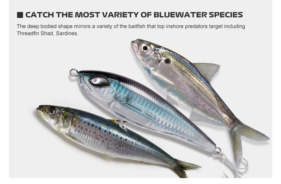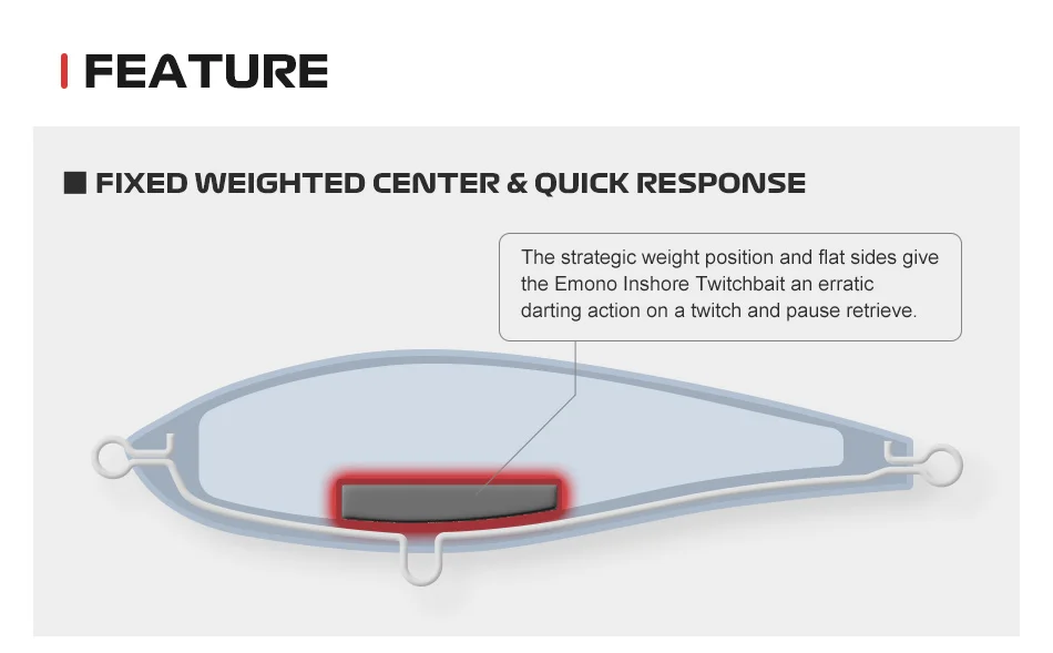- When twitched and paused it has a side-to-side wiggle as it slowly sinks making it look like a wounded baitfish.
