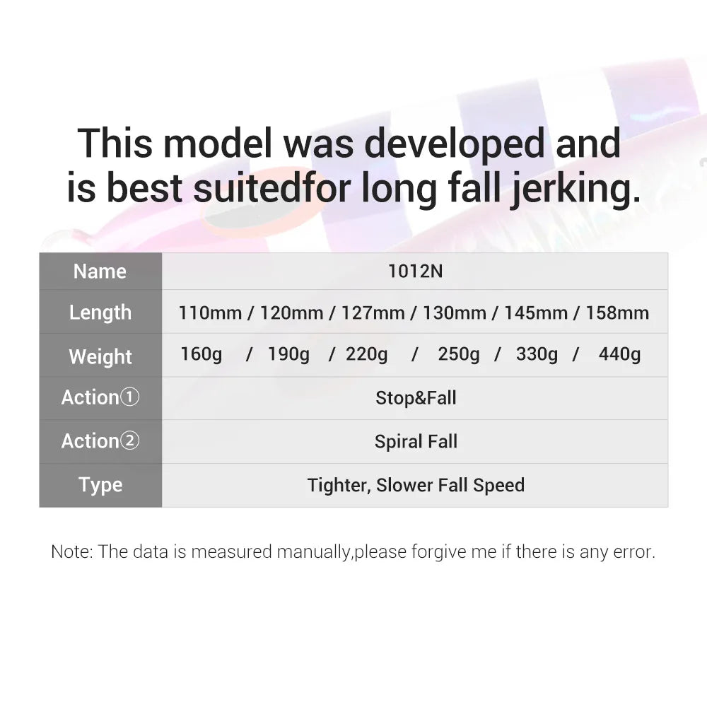 Noeby Metal Jig Fishing Lure 160g 190g 220g 330g 440g Long Fall Jerking Jig Lure Artificial Hard Bait for Sea Fishing Lures