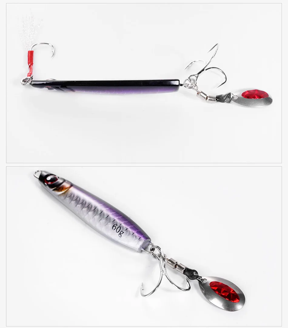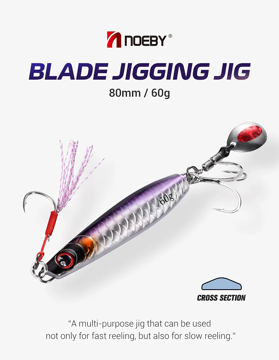 Noeby Metal Jig Lure 60g Casting Tail Spinner Jigs Spoon Sea Fishing Slow Jigging Artificial Hard Bait Saltwater Fishing Lures