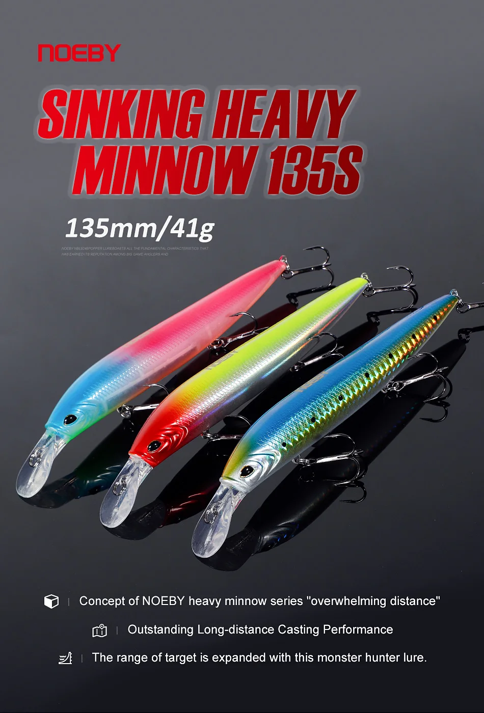 Noeby Sinking Minnow Fishing Lures 135mm 41g Wobbler Jerkbait Long Casting Artificial Hard Bait for Sea Bass Fishing Lure