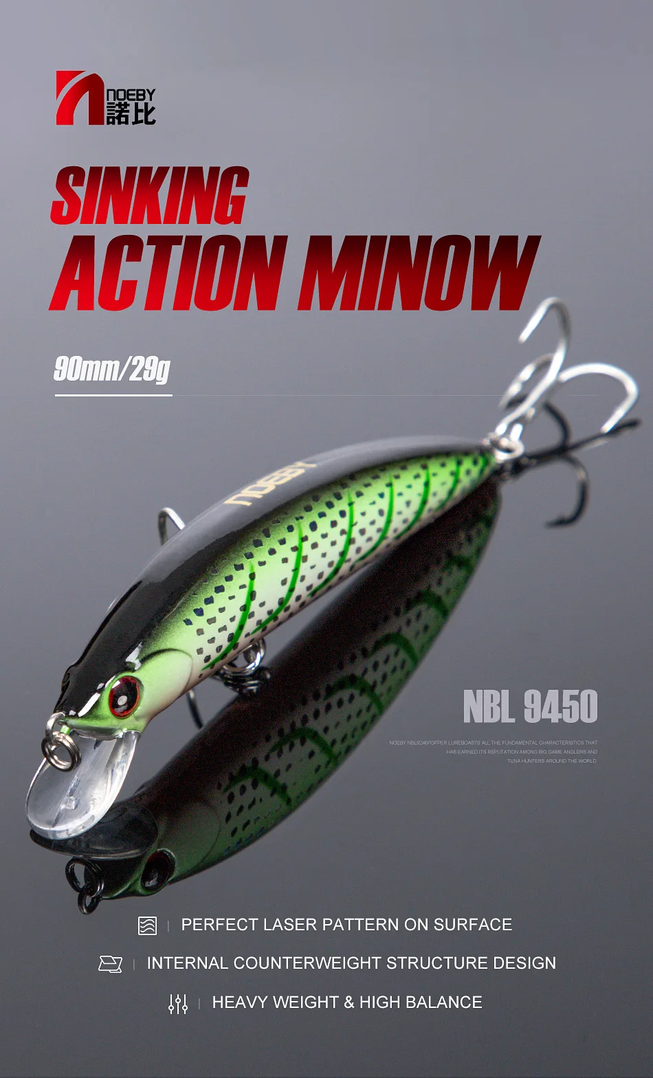 Built for performance and designed with detail, the Noeby 90mm Sinking Minnow is a must-have for anglers looking for distance, durability, and dependable fish-catching action.