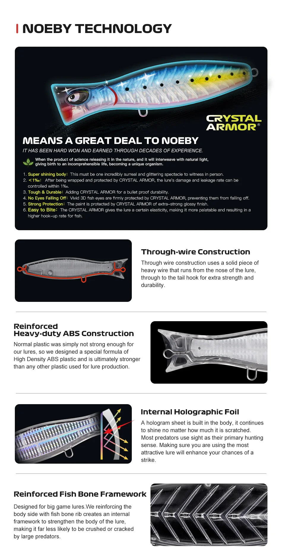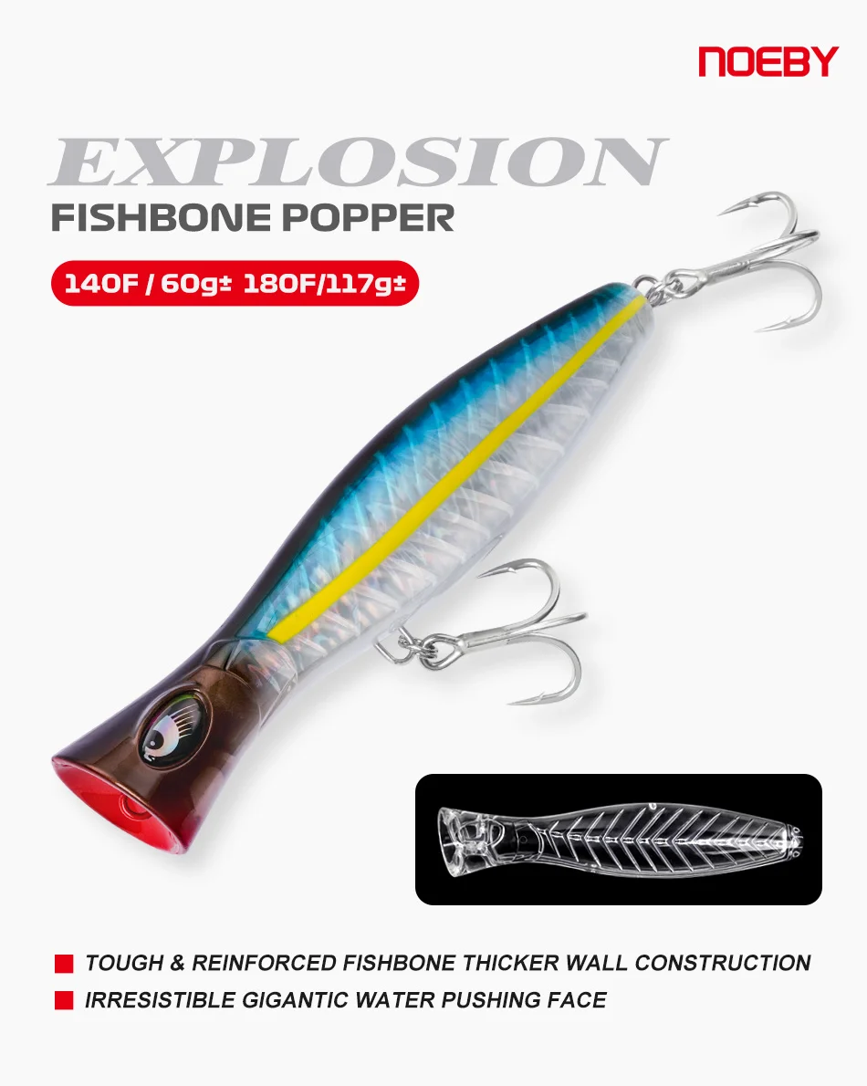 Noeby Popper Fishing Lure 140mm 60g± 180mm 117g± Fishbone Poppers Surface Crystal Armor Technology Reinforced Hard Bait Sea Lure