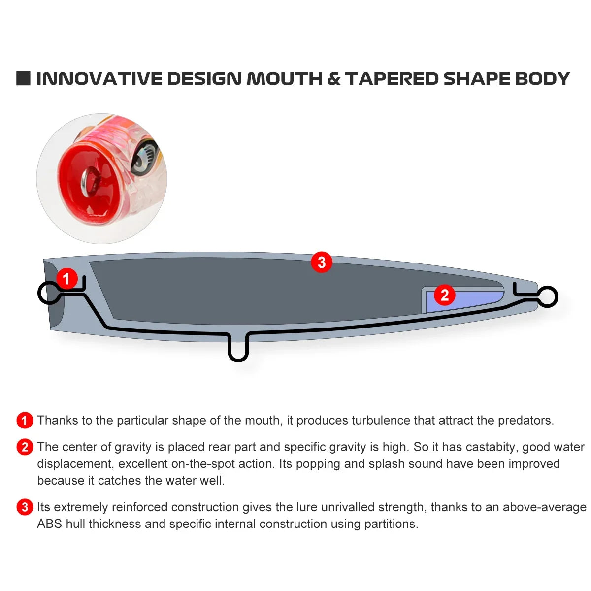165mm 68g Topwater Popper for Big Game Tuna Fishing