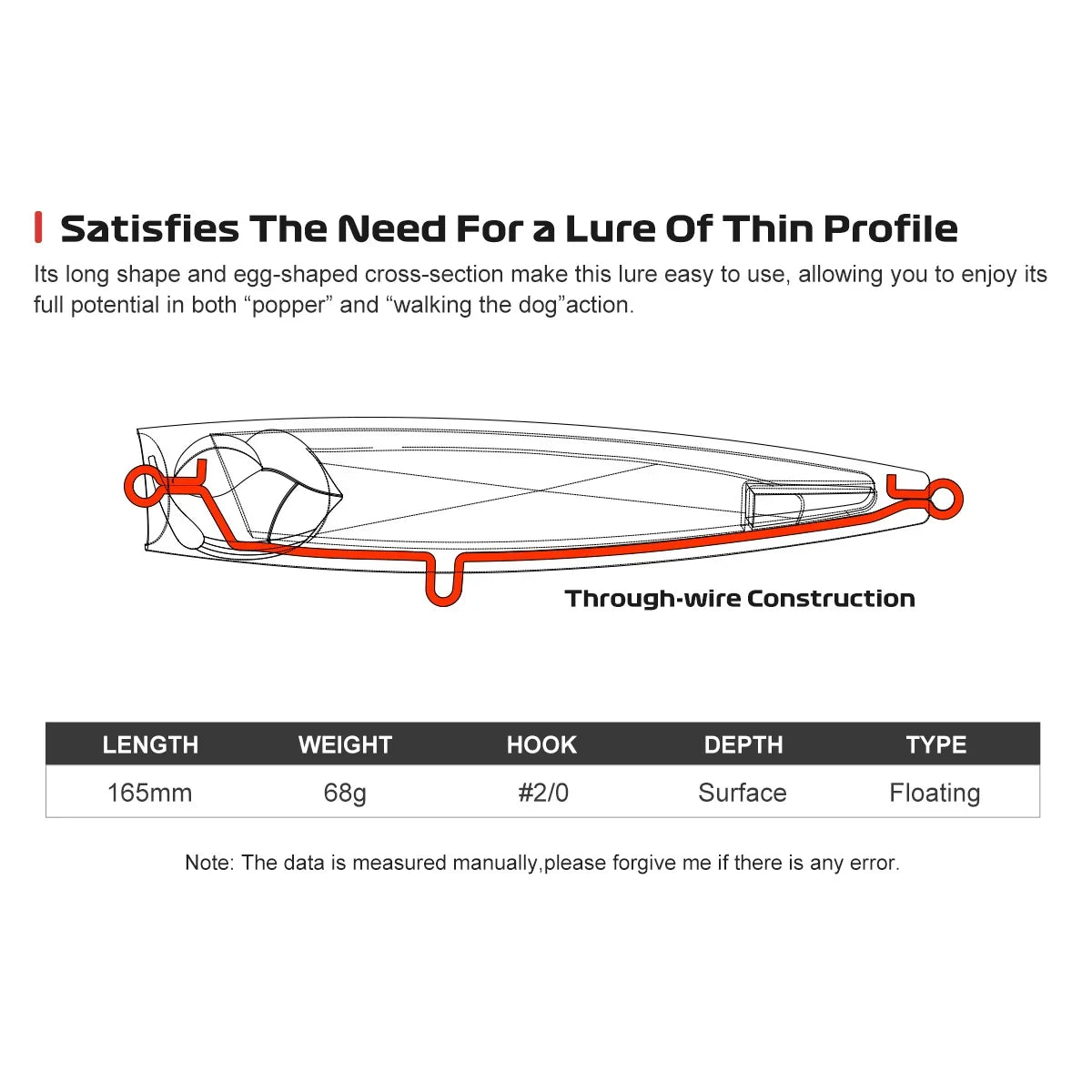 Noeby Popper Fishing Lure 165mm 68g Topwater Walker Spinning Jerkbait 4X Hooks Artificial Hard Bait Big Game Tuna Fishing Lures