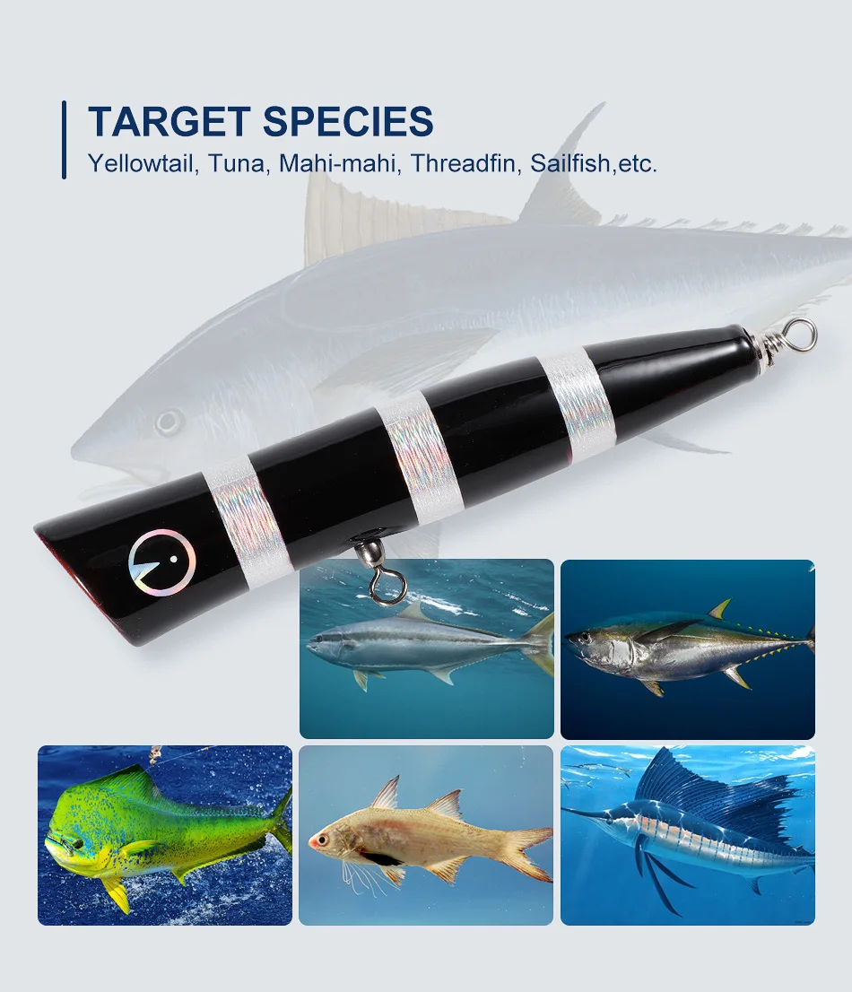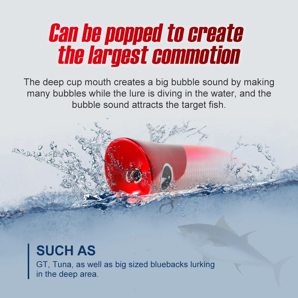 Heavy Duty Wooden Popper Lure 180mm for GT Trolling and Big Game Fishing