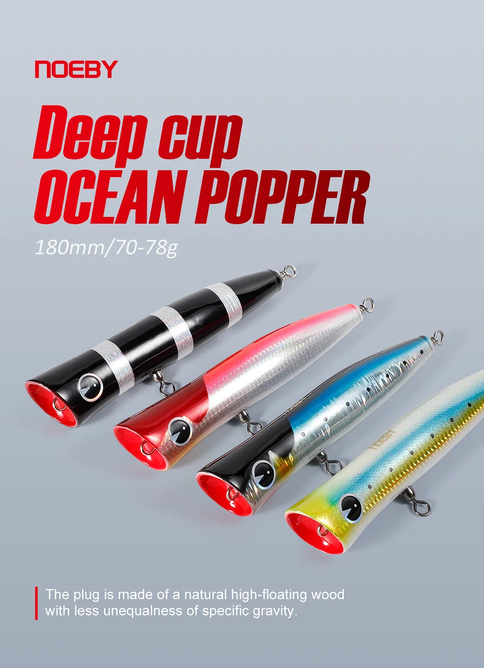 Noeby Popper Fishing Lure 180mm 70-78g Big Game Surface Wooden Artificial Hard Bait for Trolling GT Heavy Sea Fishing Tackle