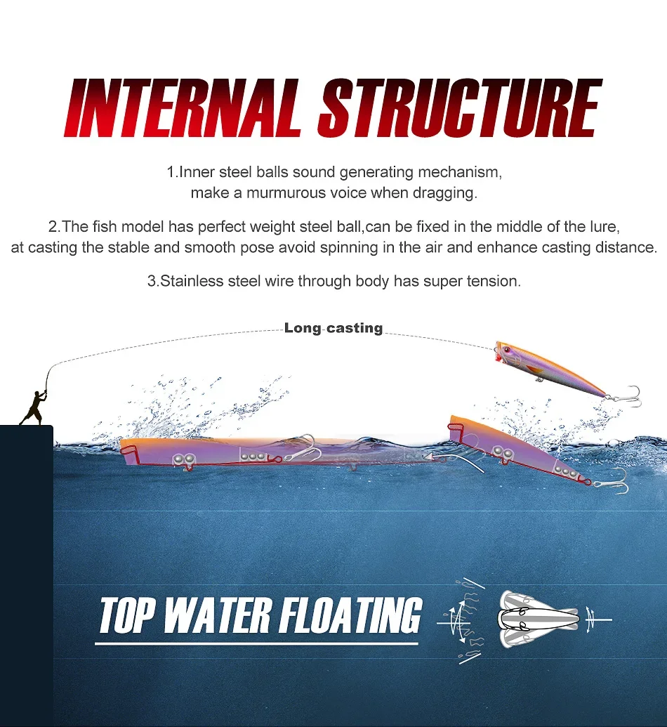 Topwater Popper Wobbler 140mm for Pike and Sea Bass Fishing