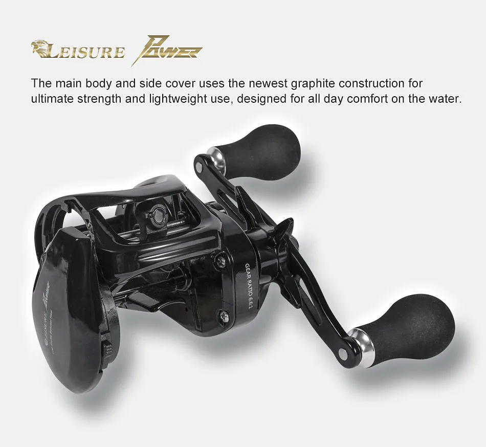 The main body and side cover uses the newest graphite construction for ultimate strength and lightweight use, designed for all day comfort on the water.