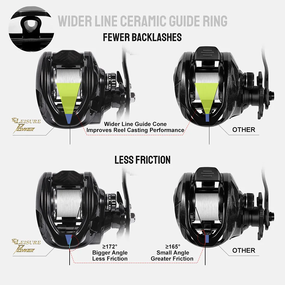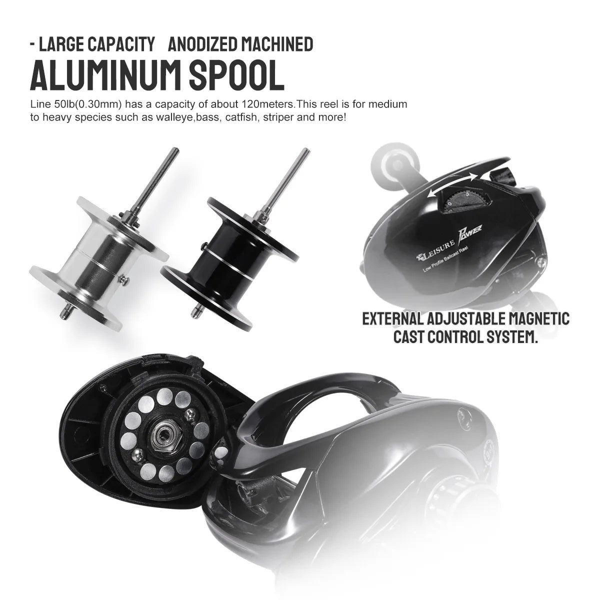 Noeby Baitcasting Reel Low Profile 6.6:1 Max Drag 13kg Predator Aluminum Spool Carbon Fiber Star Drag Brass Gear Fishing Coil