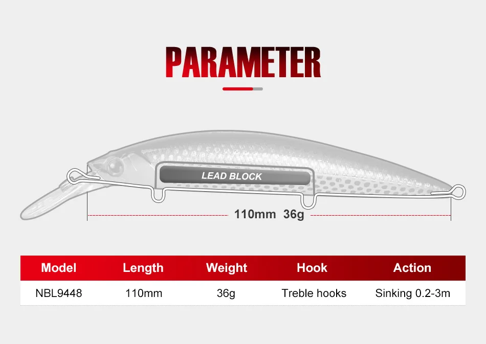 The NOEBY 110mm/32g Sinking Minnow is a deep-diving jerkbait specialist designed for targeting Sea Bass and other aggressive saltwater predators. Its controlled sinking action and erratic darting movements trigger instinctive strikes in challenging conditions.