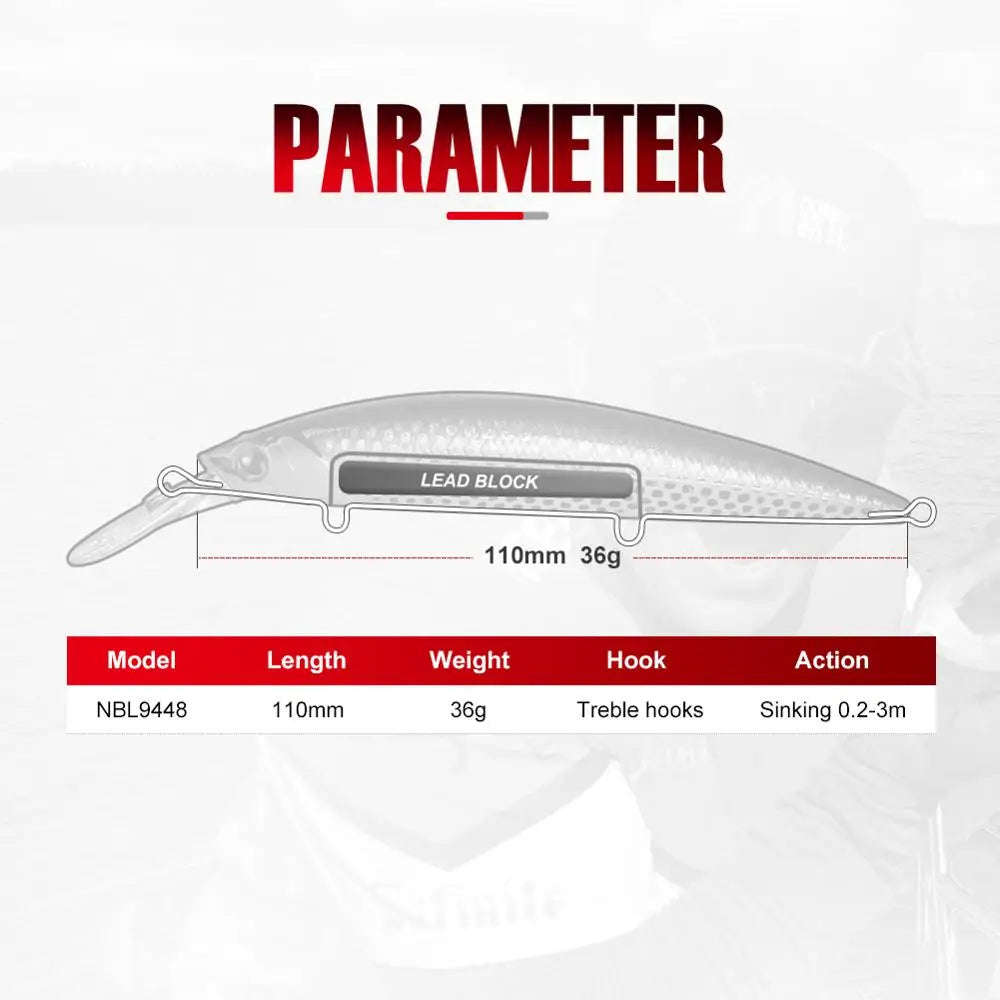 NOEBY Sinking Minnow Jerkbait – 110mm 32g Precision Saltwater Predator Lure