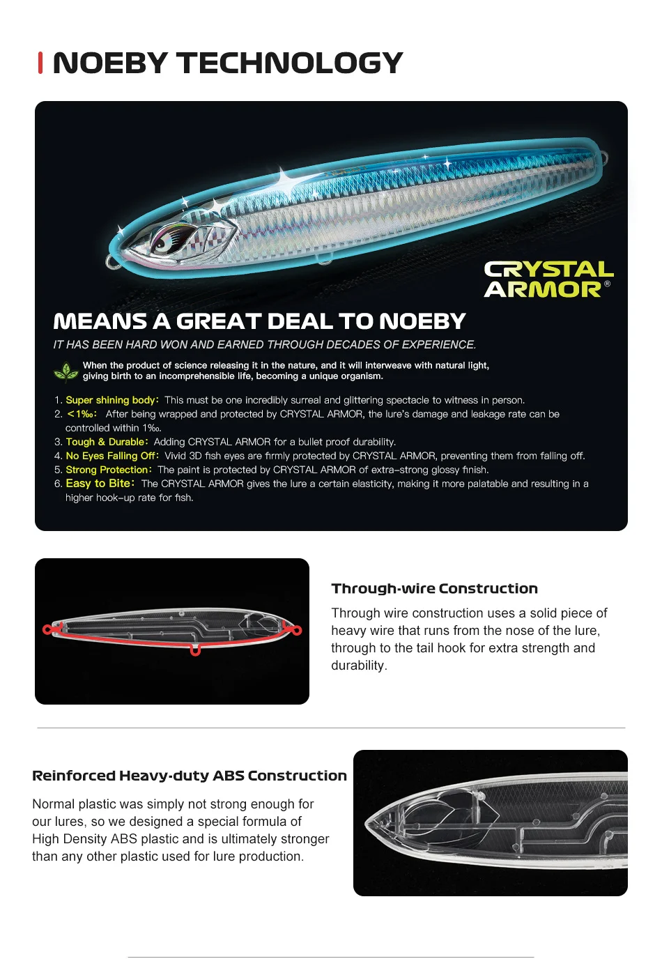 Noeby Sinking Stickbait Fishing Lure 160mm 75g± 185mm 114g± 205mm 154g± Reinforced Pencil Artificial Hard Bait Sea Fishing Lures