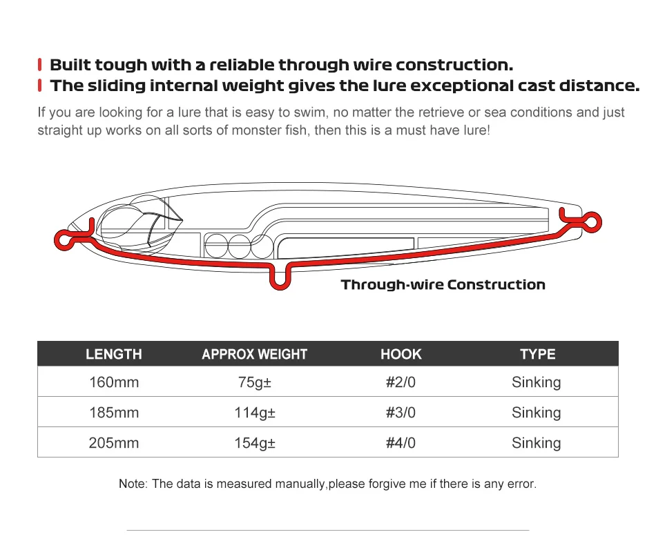 160mm 75g-205mm 154g Sinking Stickbait for Sea Fishing