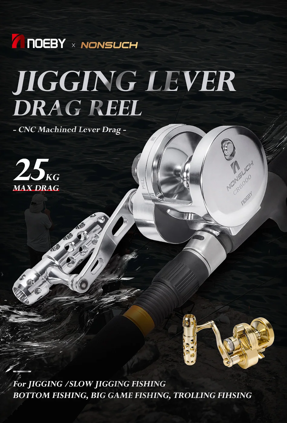 Noeby-Slow Jigging Reel, CNC Metal, High Speed, Boat Trolling, Big GameSea Fishing Reels, Max Drag 25kg, Saltwater Fishing Reels