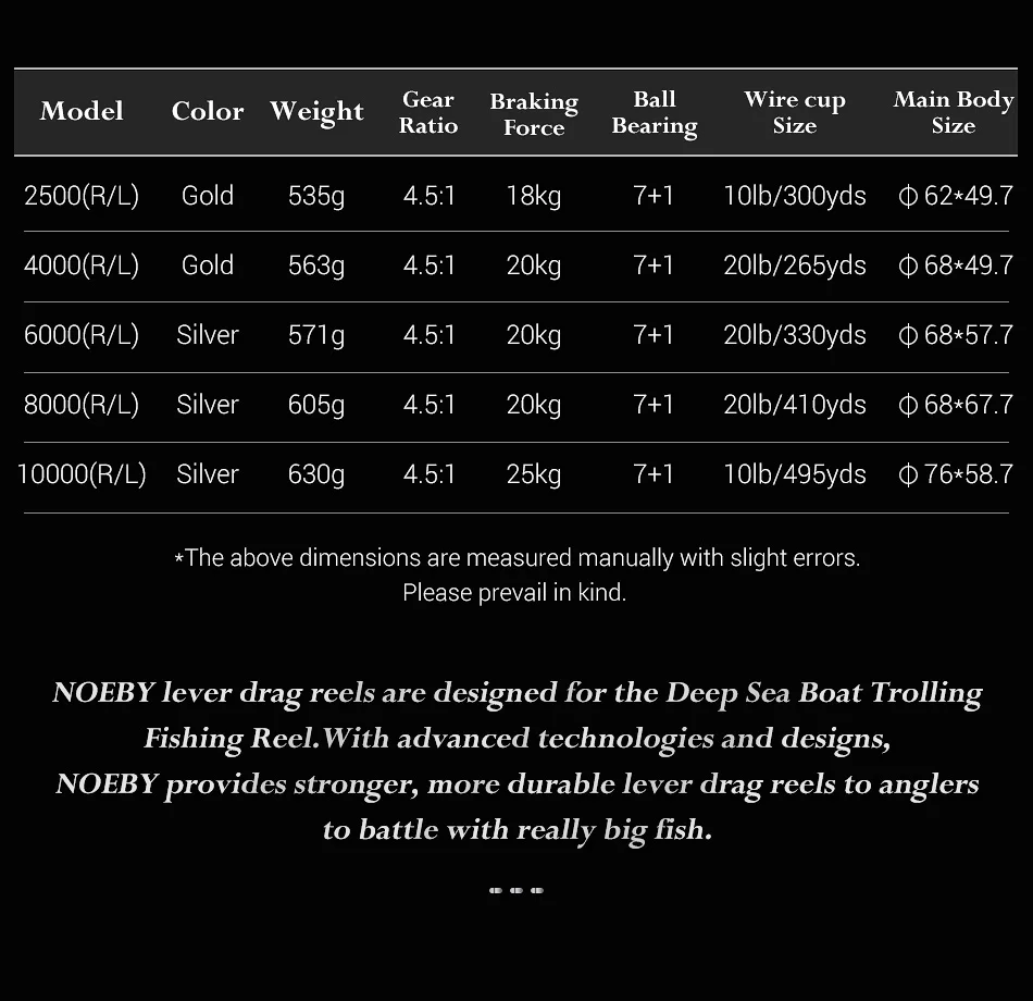 With advanced technologies and designs, Noeby provides stronger, more durable lever drag reels to anglers to battler with really big fish.