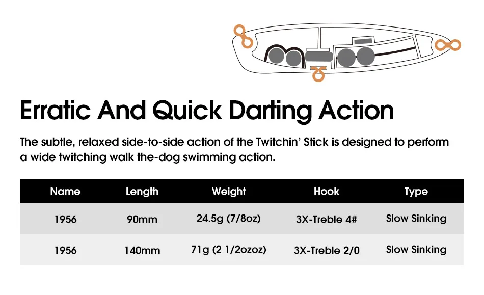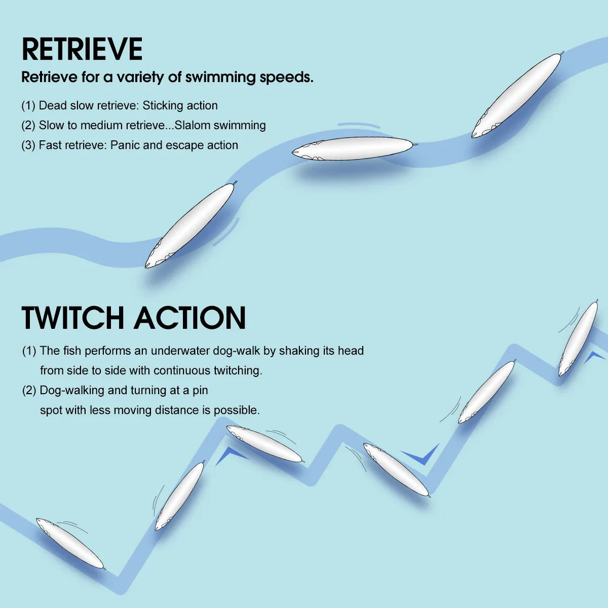 Slow Sinking Stickbait 9cm 24.5g-14cm 71g for Bass Fishing