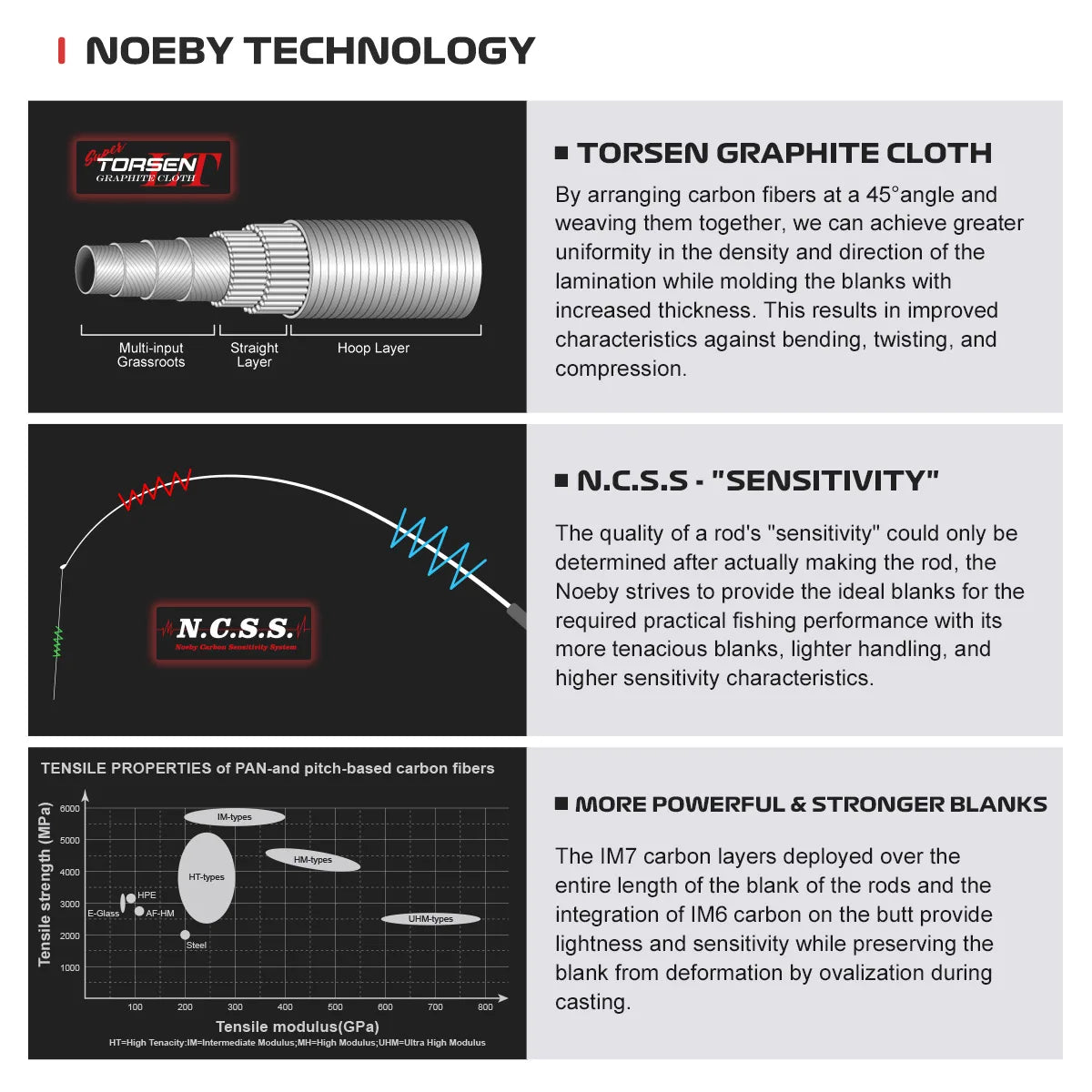 Noeby Spinning Fishing Rod Jig Worm Casting Rods 2.03m 2.19m Fuji Toray Freshwater Bass Sensitive Lure Fishing Rod