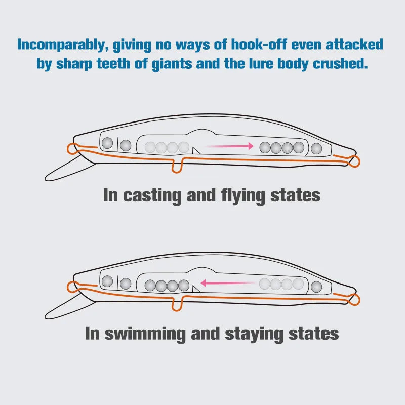 This makes the weight center loading close to the end of the lure as much as possible so that it can achieve a more stable flying.